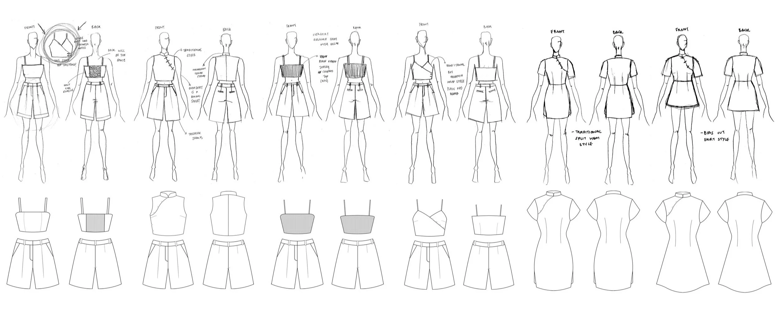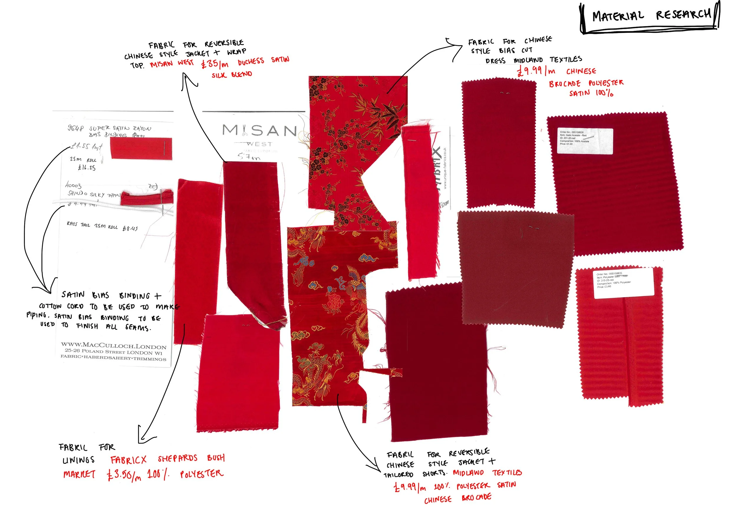 Wedding outfits inspired by traditional Chinese dress with a modern day twist. Featuring a reversible jacket, reversible wrap top, tailored shorts and an A-line bias cut dress.